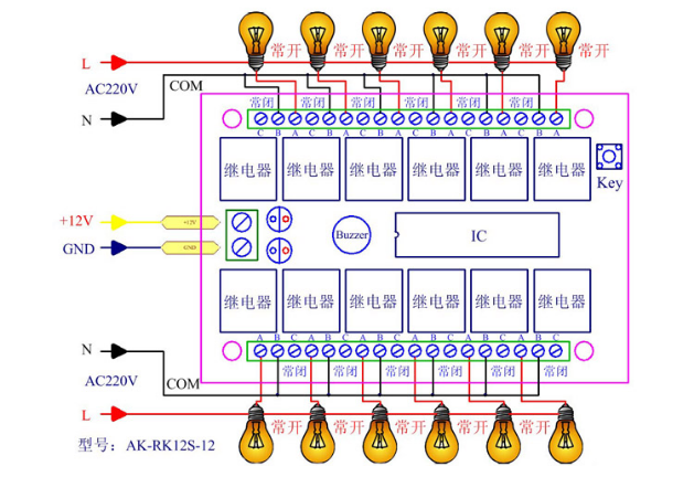 7、输出方式:十二路继电器开关信号